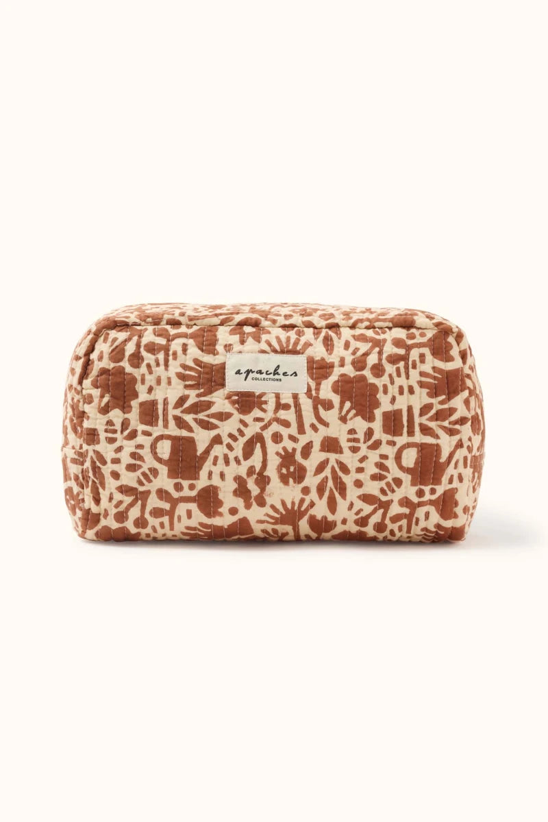 בין החופשה ליומיום, כתיק רחצה או טואלטיקה פרטית. תיק הרחצה הגדול הזה הוא תיק שמכיל מה שתצטרכי לקחת איתך לחופשה או לשמש אותך כתיק למוצרי ההחתלה של הקטנים. פרקטי ומרווח בבד כותנה יפיפה באיורי הבלוק פרינט של סטודיו אפש הפריזאי.