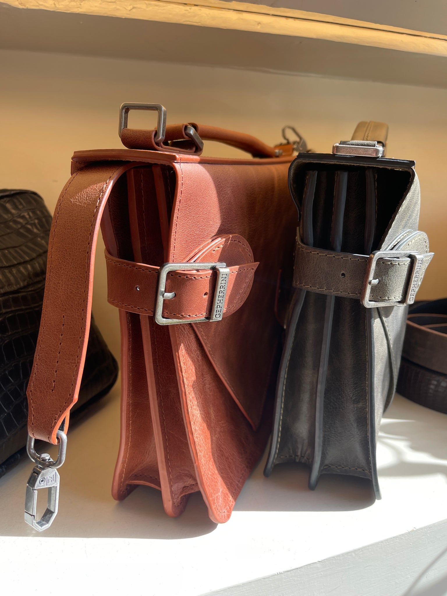 התיק נתפר בבית מלאכה בעבודת יד ,הינו בעל חלל אחד המחולק במחיצה פנימית לשני תאים נפרדים. נסגר בקלאפה א-סימטרית ושני מגנטים.
