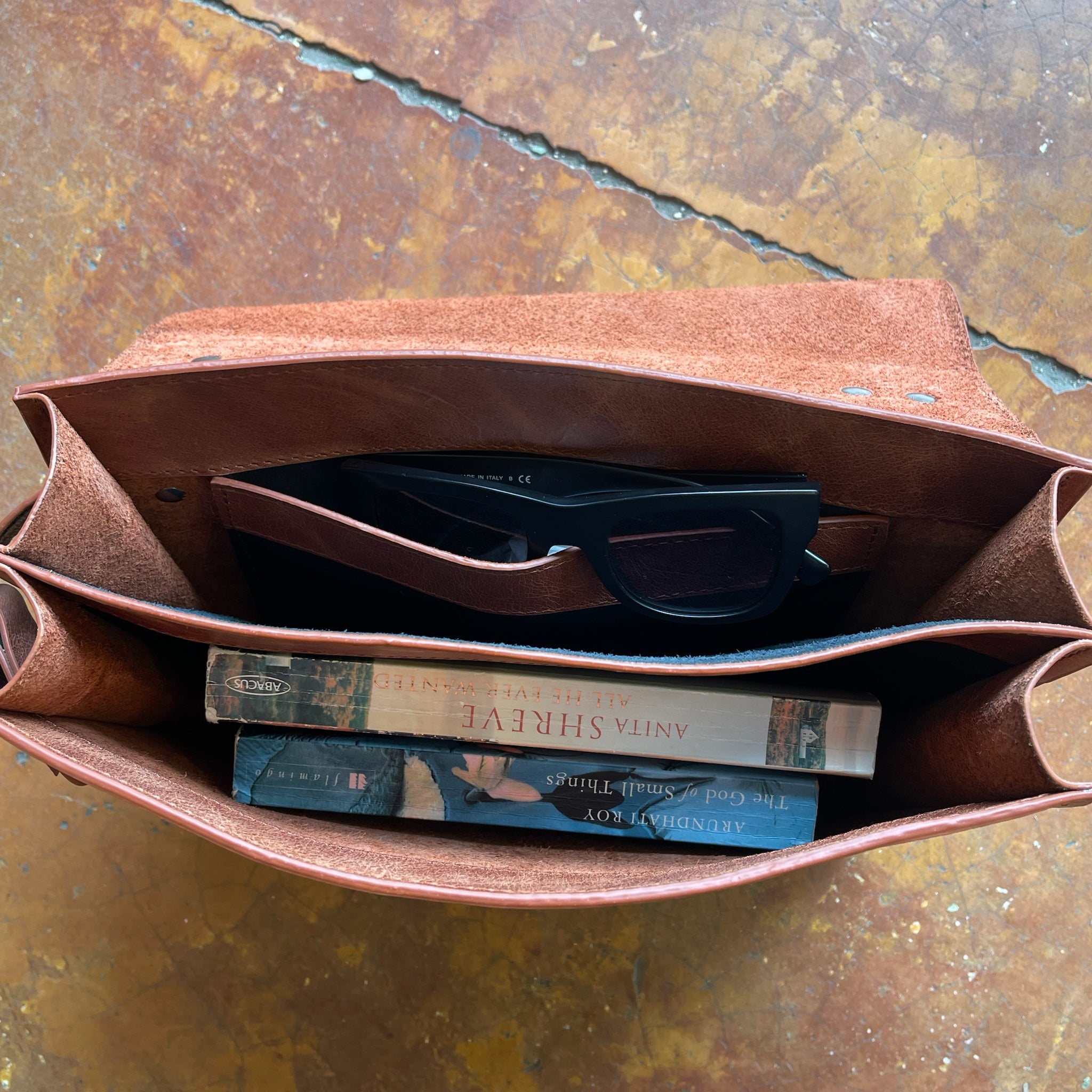 התיק נתפר בבית מלאכה בעבודת יד ,הינו בעל חלל אחד המחולק במחיצה פנימית לשני תאים נפרדים. נסגר בקלאפה א-סימטרית ושני מגנטים.